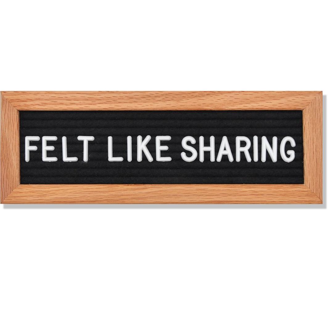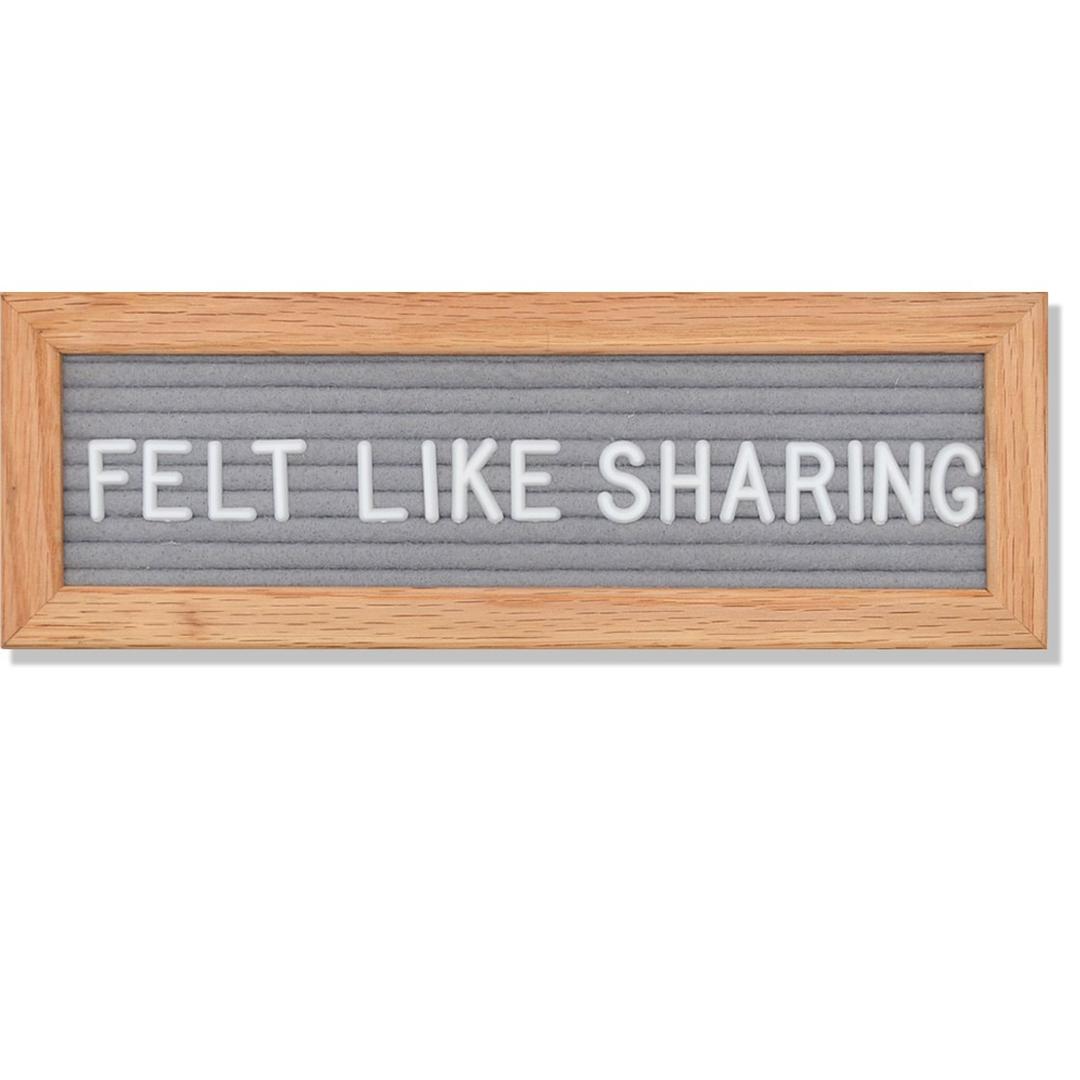 Brief & beautiful. Introducing Felt Like Sharing's adorable, truncated letter board: Abbrev. At just 3.5 x 10 inches, Abbrev. draws plenty of attention, and always a grin. Fit up to two rows of your most clever & inspirational words, or share announcements about the tiny humans in our lives. What will Abbrev. help you share?