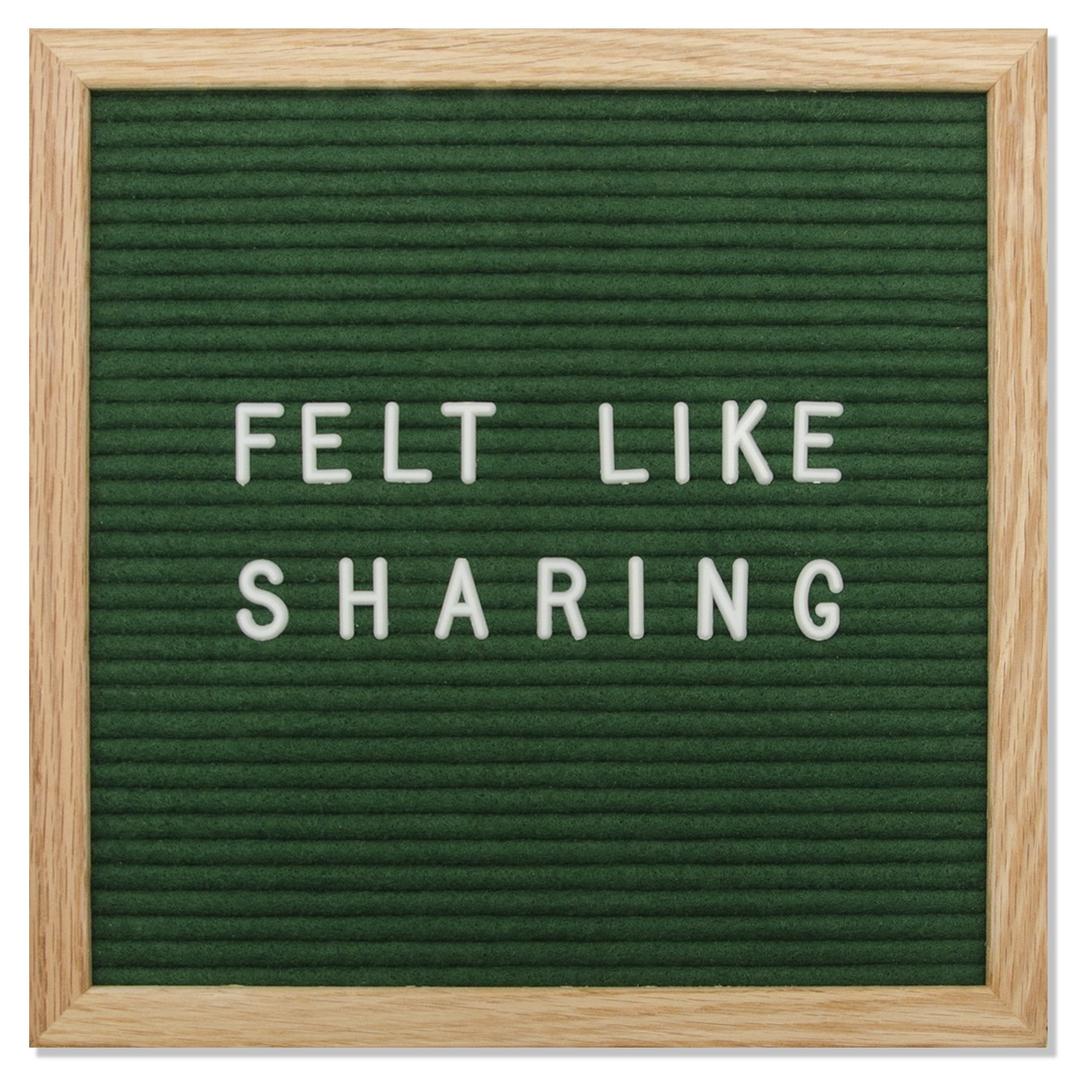 āI cannot say enough good things! The board is super cute and perfect in my kitchen. I was thrilled with how many letters, numbers, punctuation marks, etc. came with the board. I thought I may need to order more but that is simply not the case, Felt Like Sharing was more than generous with them! The board itself is sturdy and well made, and the ribbing is tight enough that you don't have to worry about letters falling off. Felt Like Sharing is a super responsive and pleasant company to work with and I have a feeling that I will be ordering many more boards from them in the future!ā
