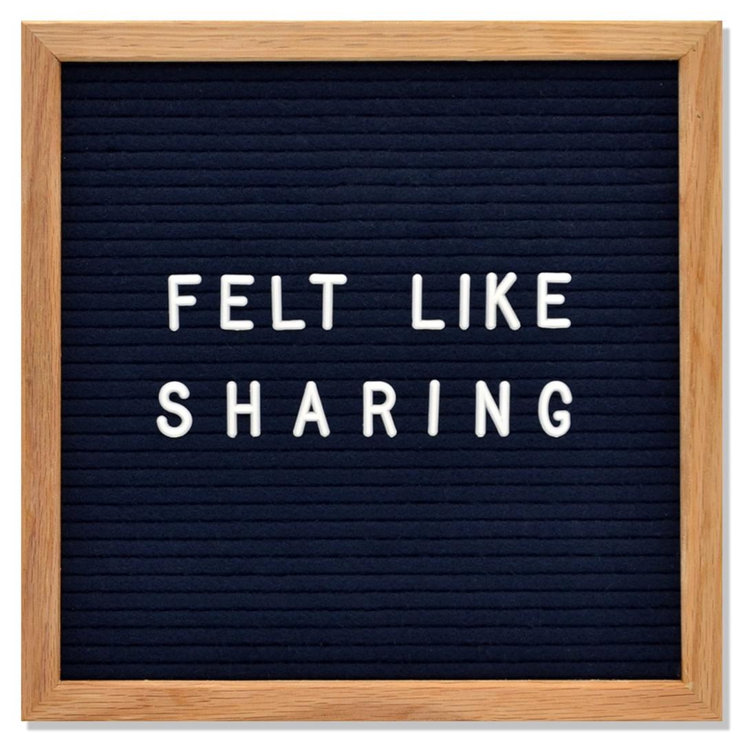 This board screams good qualityĀ -- I can tell it is going to last. I've seen some others in stores that don't have the same heft/feel to them, you can tell Felt Like Sharing uses premium materials. My only regret is seeing all the other colors available along with different colored letters. I'm afraid I might have to collect them all!"