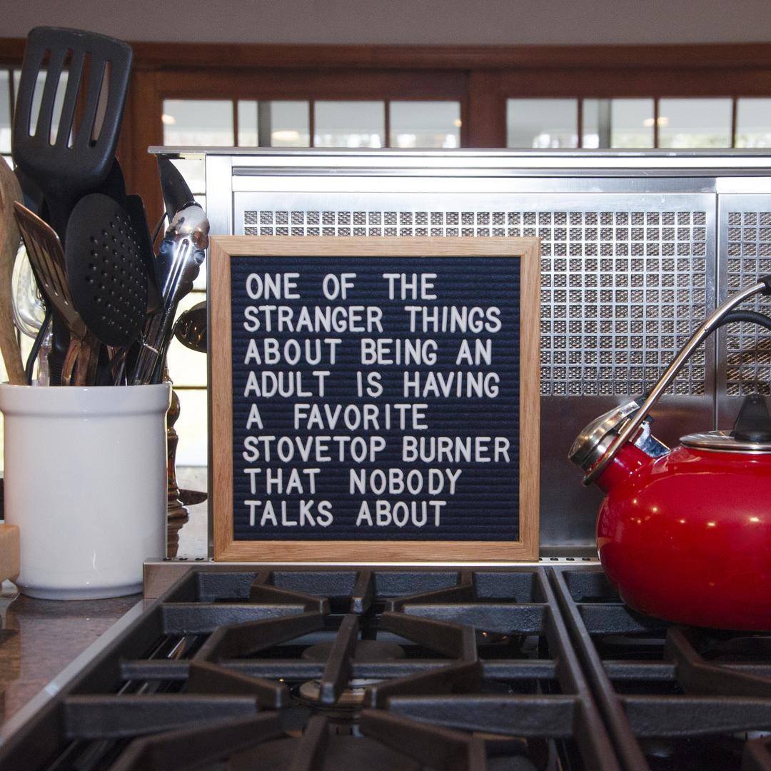 āI cannot say enough good things! The board is super cute and perfect in my kitchen. I was thrilled with how many letters, numbers, punctuation marks, etc. came with the board. I thought I may need to order more but that is simply not the case, Felt Like Sharing was more than generous with them! The board itself is sturdy and well made, and the ribbing is tight enough that you don't have to worry about letters falling off. Felt Like Sharing is a super responsive and pleasant company to work with and I have a feeling that I will be ordering many more boards from them in the future!ā
