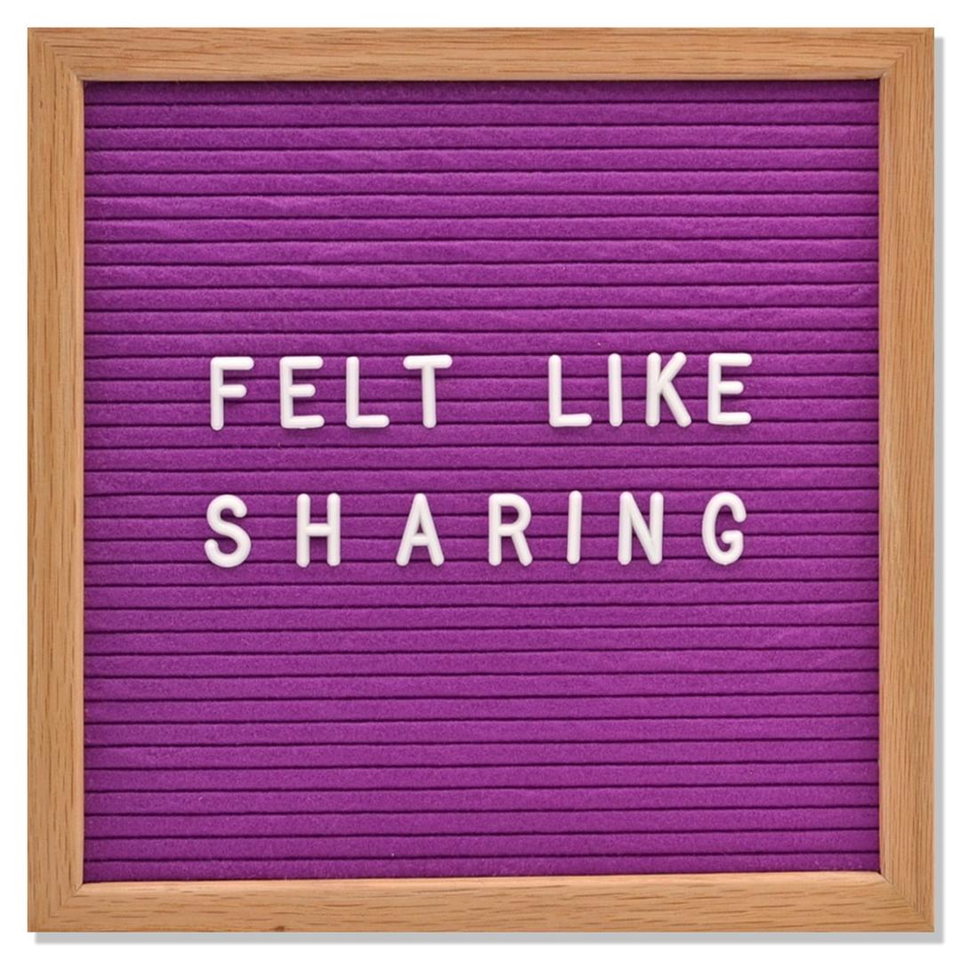 This board screams good qualityĀ -- I can tell it is going to last. I've seen some others in stores that don't have the same heft/feel to them, you can tell Felt Like Sharing uses premium materials. My only regret is seeing all the other colors available along with different colored letters. I'm afraid I might have to collect them all!"