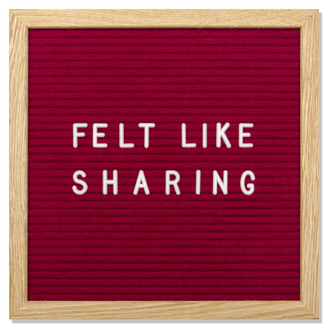 “I cannot say enough good things! The board is super cute and perfect in my kitchen. I was thrilled with how many letters, numbers, punctuation marks, etc. came with the board. I thought I may need to order more but that is simply not the case, Felt Like Sharing was more than generous with them! The board itself is sturdy and well made, and the ribbing is tight enough that you don't have to worry about letters falling off. Felt Like Sharing is a super responsive and pleasant company to work with and I have a feeling that I will be ordering many more boards from them in the future!”