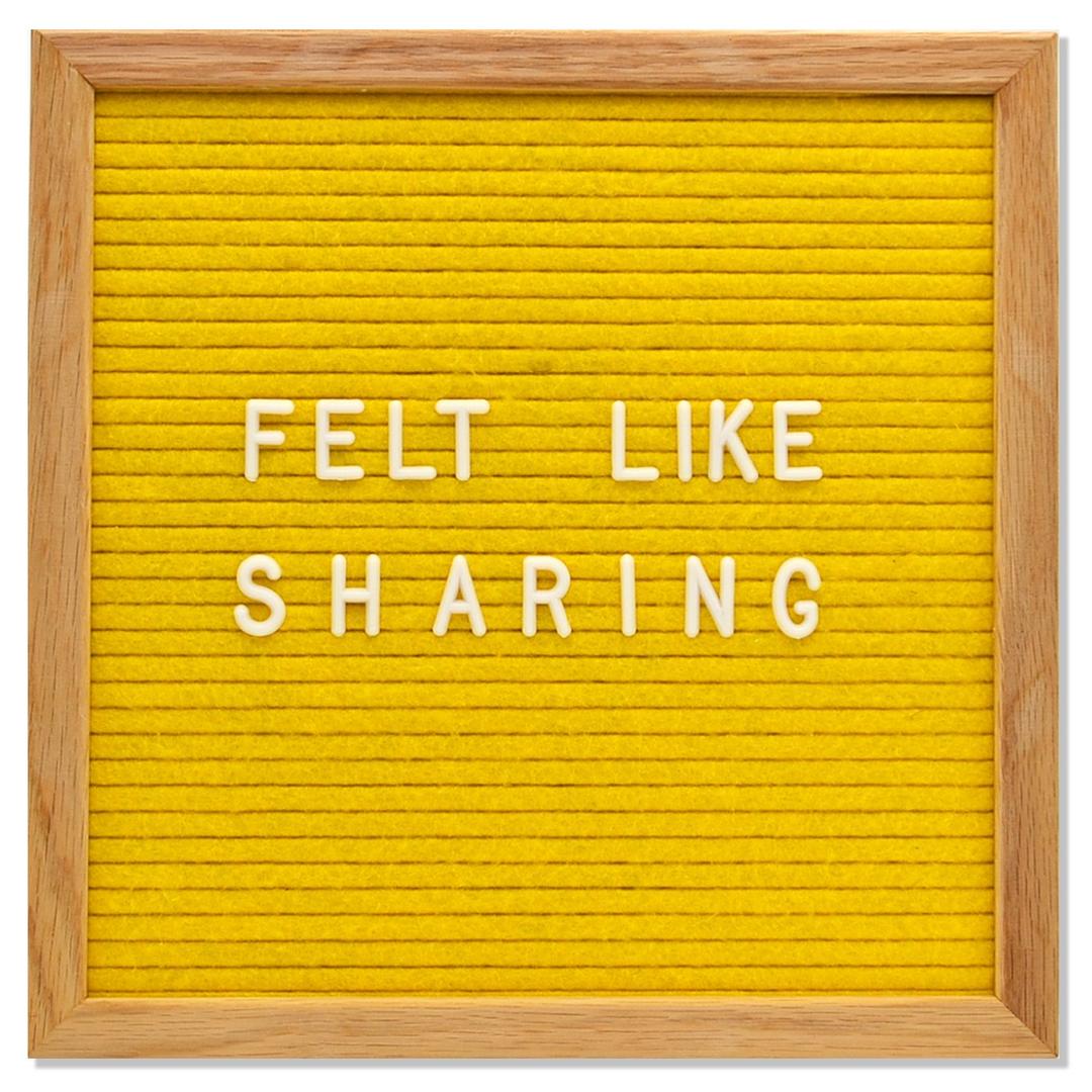 “I cannot say enough good things! The board is super cute and perfect in my kitchen. I was thrilled with how many letters, numbers, punctuation marks, etc. came with the board. I thought I may need to order more but that is simply not the case, Felt Like Sharing was more than generous with them! The board itself is sturdy and well made, and the ribbing is tight enough that you don't have to worry about letters falling off. Felt Like Sharing is a super responsive and pleasant company to work with and I have a feeling that I will be ordering many more boards from them in the future!”